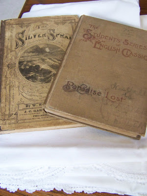 Yesterday I ran to a few estate sales (no Tom this time) that were really close to the house. One was in the most fabulous old farmhouse I've ever seen...most of the people there were more interested in house and the four out-buildings than in the estate sale, unfortunately the house had already been sold but I did find a few treasures! I hadn't realized that the sale started on Thursday so everything was half off but there wasn't really anything left. I got the two Santa mugs and the two vintage books at that sale...spent a whopping $2.25.